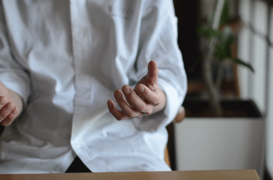 「パリの中山豊光シェフをはじめ、前シェフの大森雄哉さんや、新しいシェフの丸山(和孝)ともに働く仲間は、みんな職人の手仕事に誇りをもっています。僕自身もお菓子を作ることが好きでこの仕事に就きました。だからおもいっきり料理や菓子を作っていたい。しかし、ただ作っているだけではその仕事が続けられないことは、今回のコロナ禍で痛感しました。職人が職人の仕事をし続けるためにも、僕たち自身が新しい職人にならなければいけないのだと思います」