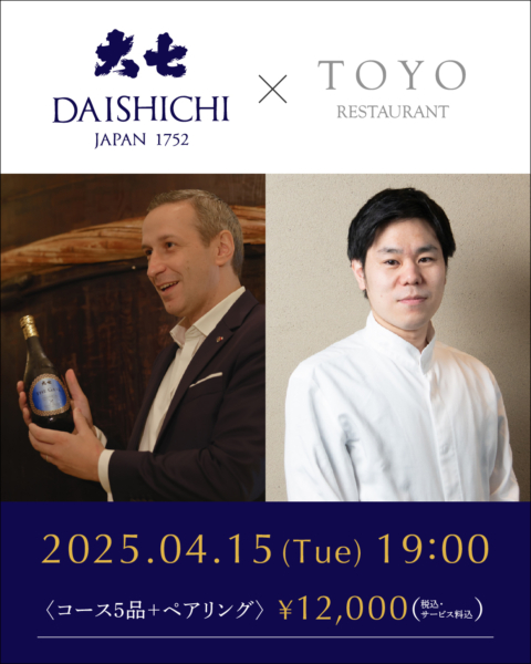 世界的ソムリエが惚れ込んだTOYOの世界観と、チュイザ氏自らが大七酒造と生み出した初の日本酒との融合をご堪能ください。