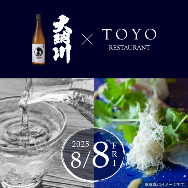 「大納川酒造」は、1914年創業の歴史ある蔵元。雪深い内陸の地で、清らかな湧き水と秋田県産米にこだわり、繊細で旨味のある酒造りを続けています。伝統を大切にしながらも、若き杜氏を中心に革新を重ねるその姿勢は、Restaurant TOYOの料理とも深く響き合います。